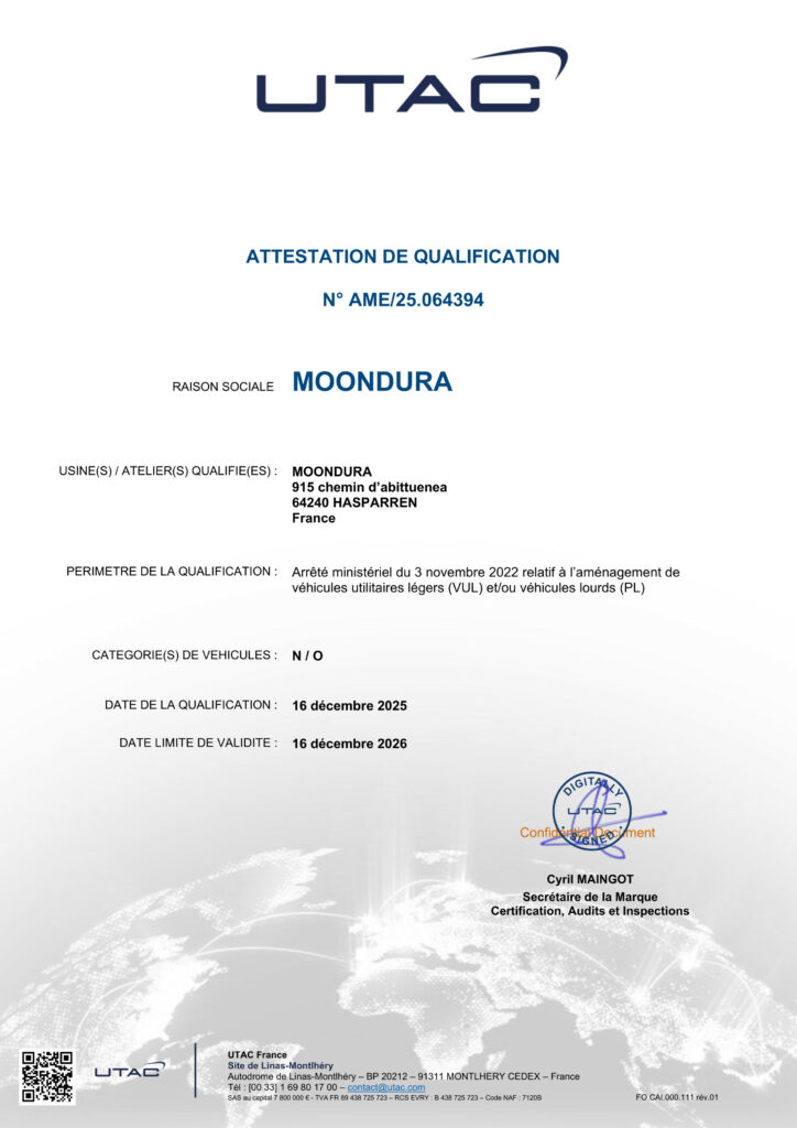 Moondura est Opérateur Qualifié Aménageur UTAC