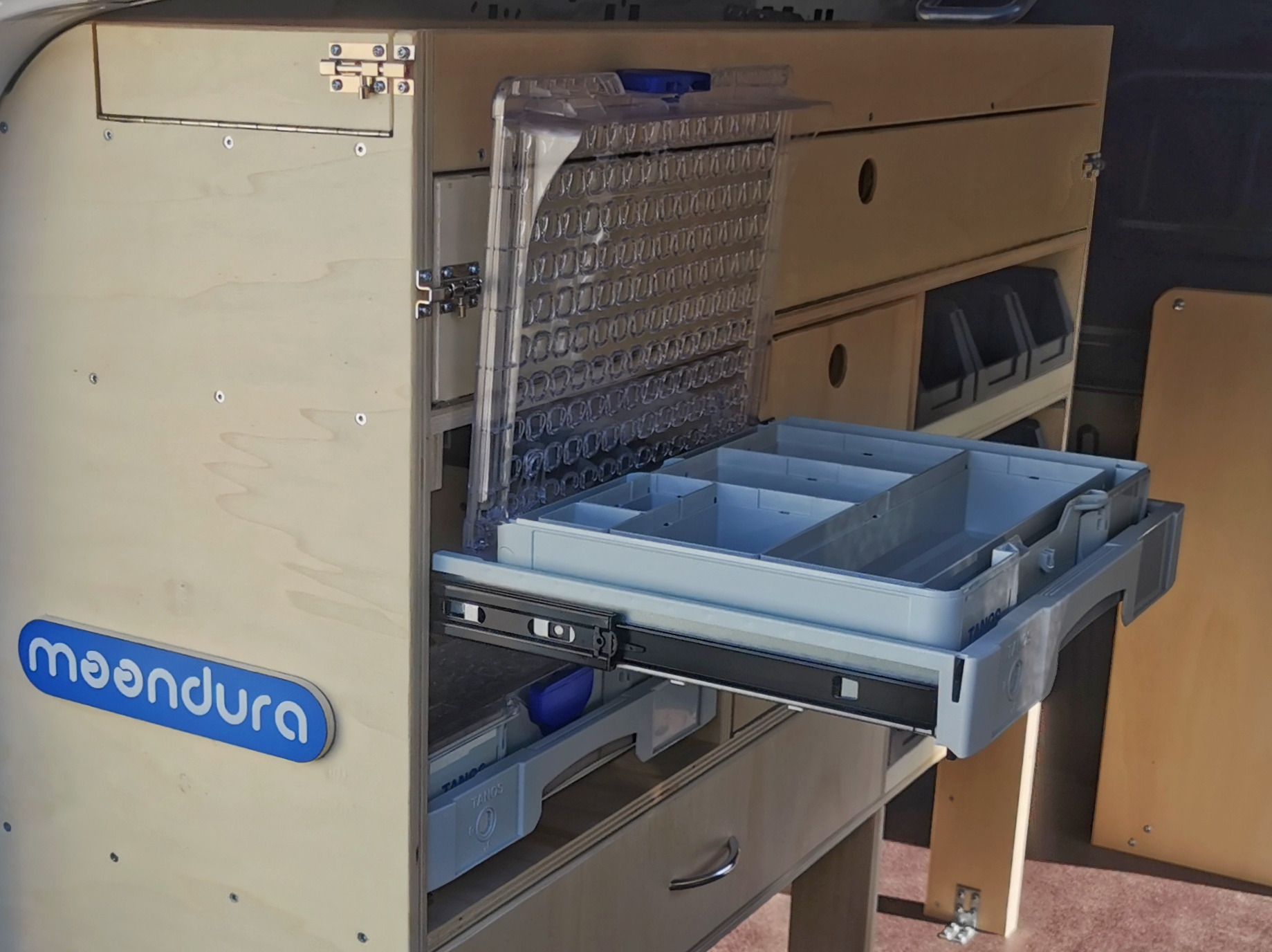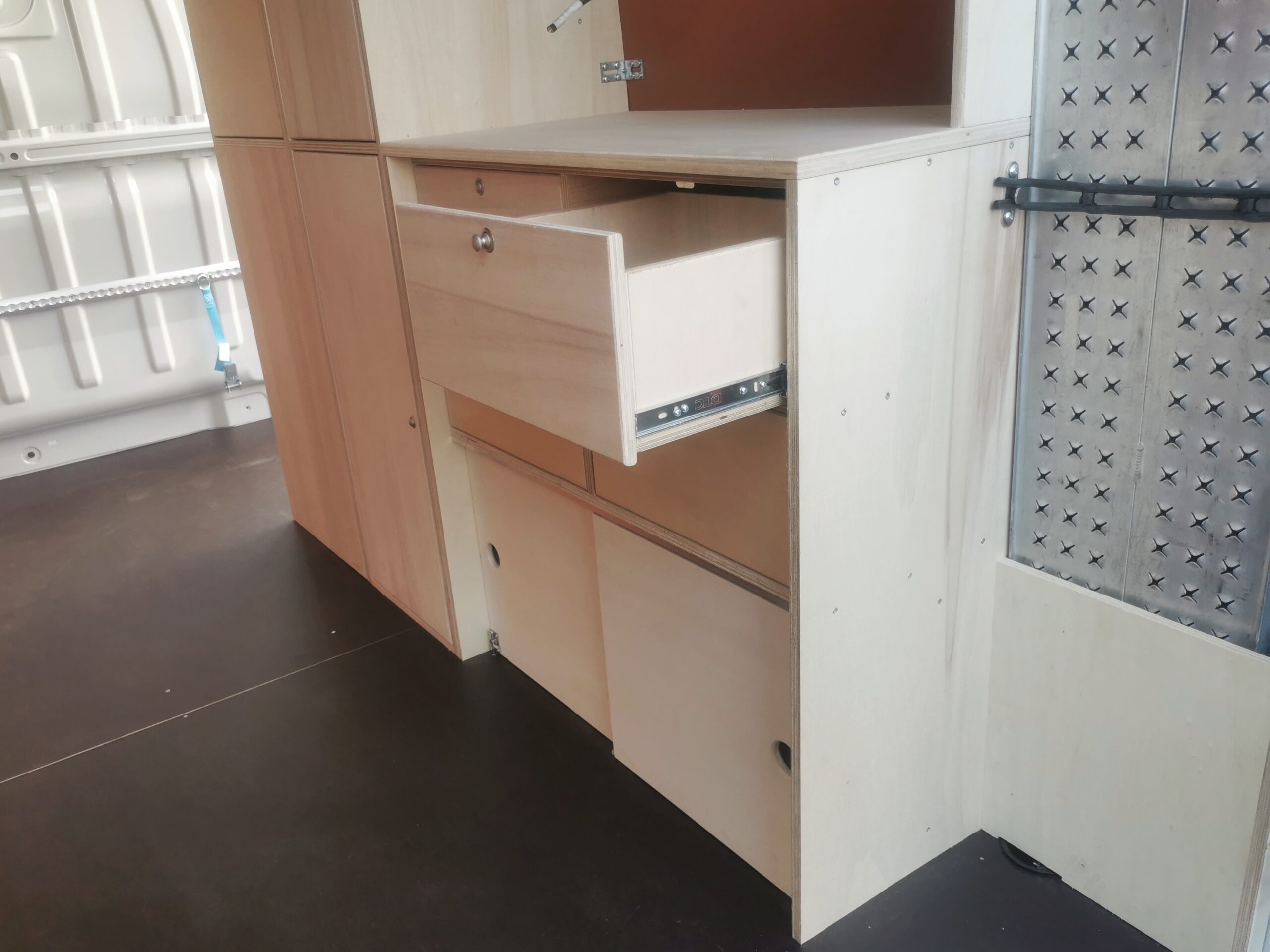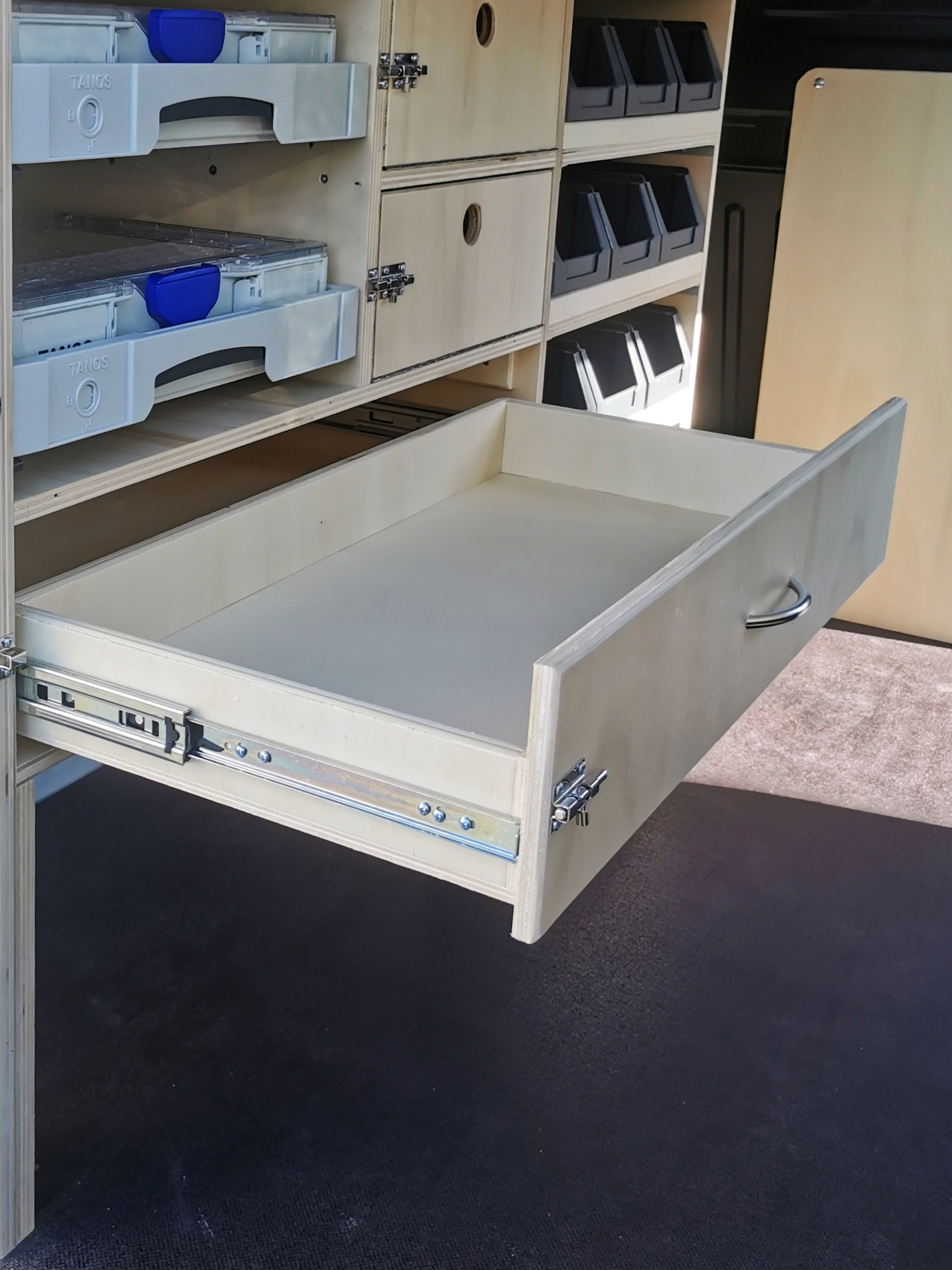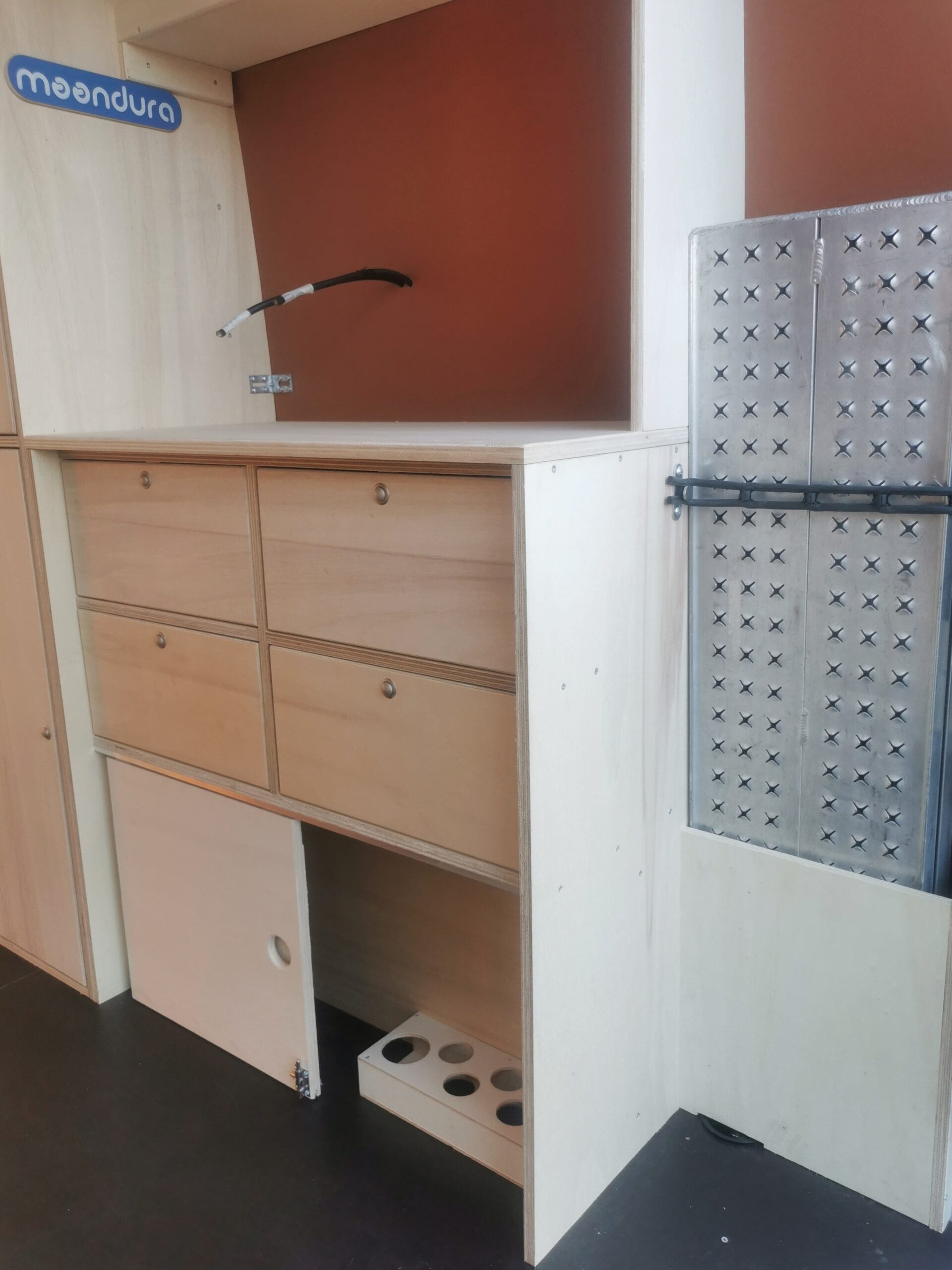 Aménagement sur mesure suivant votre matériel quotidien afin d’être disponible de suite et de le ranger en sécurité.